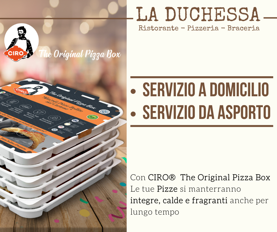 Il Ristorante Pizzeria La Duchessa continua a migliorarsi sempre di più riuscendo a portare a casa la tua la pizza come appena sfornata!