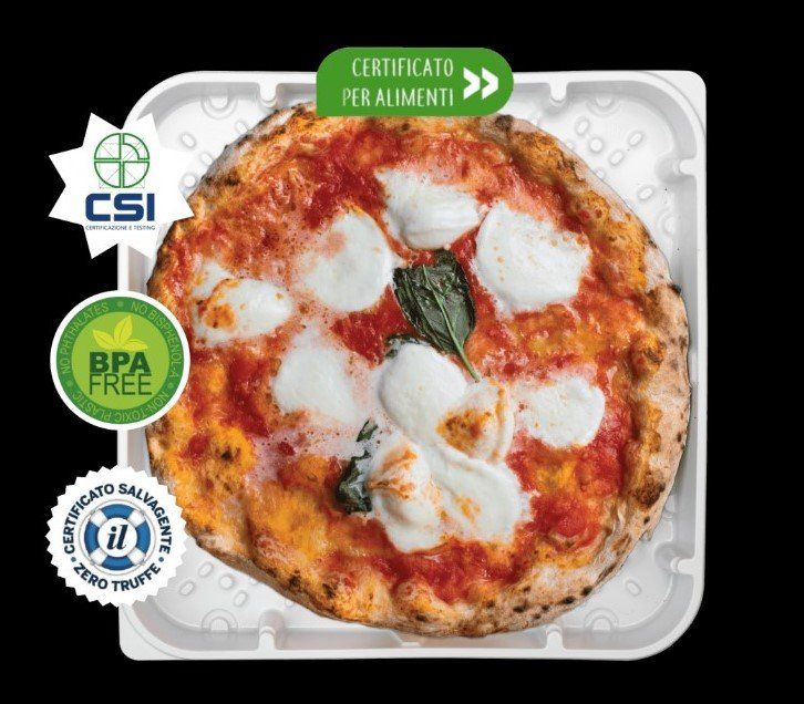- un contenitore ecologico, riciclabile al 100% e certificato per uso alimentare e libero da sostanze nocive e a un servizio a domicilio specializzato siamo in grado di farti vivere l'esperienza di mangiare come in Pizzeria!